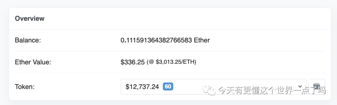 我们再点击发起者的地址下钻到其详情页,可以看到他的余额有0.1个ETH,小户。